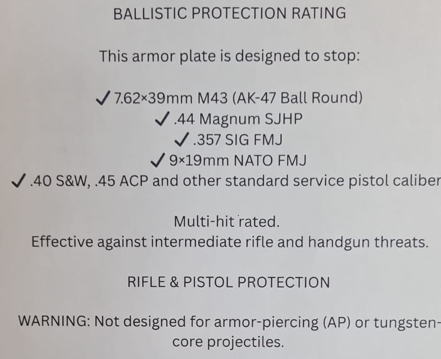 WARNING: Not designed for armor-piercing (AP) or tungsten-core projectiles